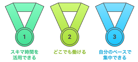 好きな時間に作業をおこなえる一方、納期は厳守です。